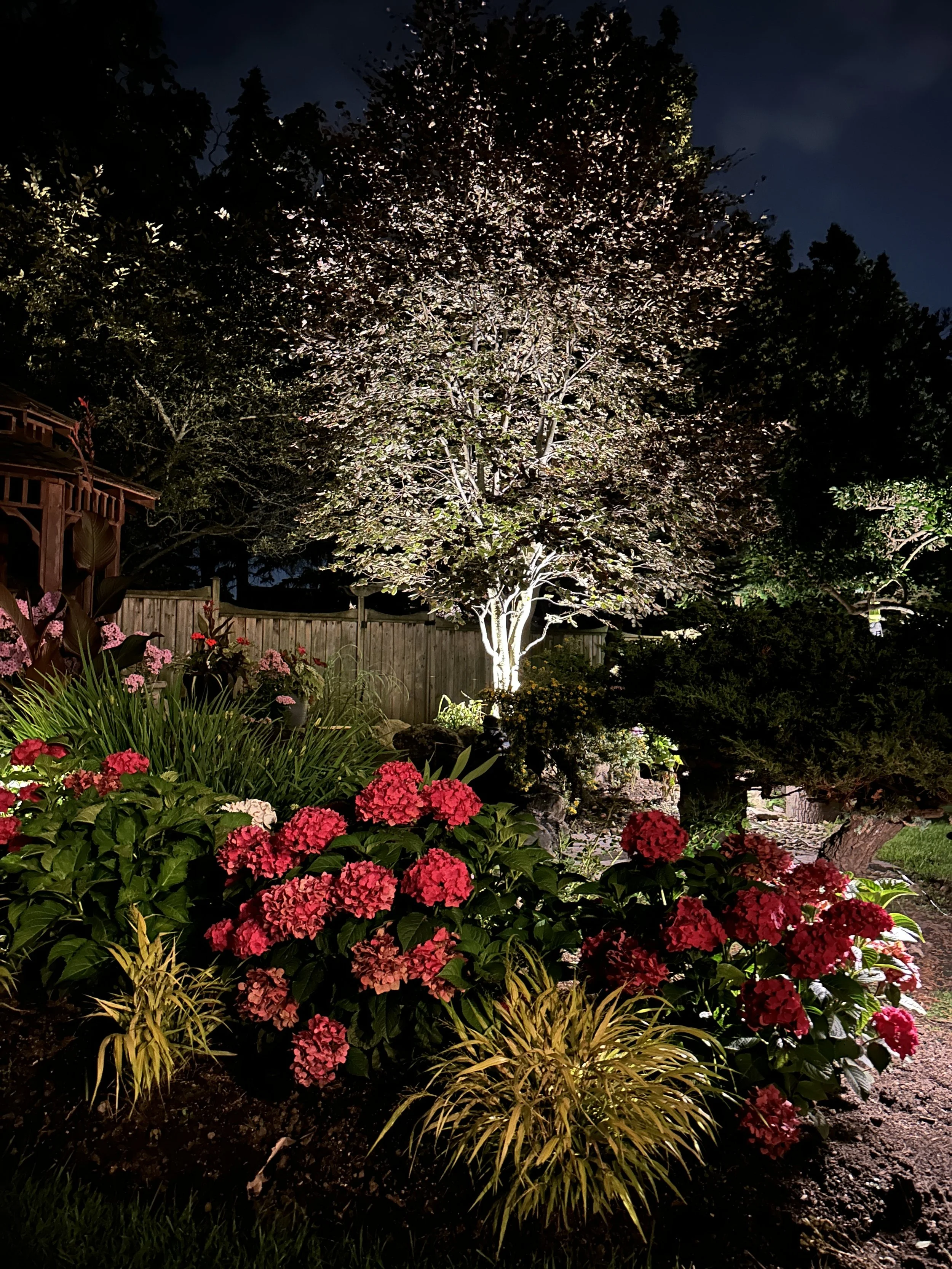 “Matt and Adam from Apex Outdoor Systems installed new landscape lighting in our front and back yards. Our existing system, installed nearly 18 years ago, was minimally working and overgrown. Matt designed a new layout to address our now mature garden and selected new fixtures to enhance the hard and soft structures. Pricing was reasonable and work was done on time… efficiently and professionally. I am very happy with the outcome. The property looks spectacular at night.”